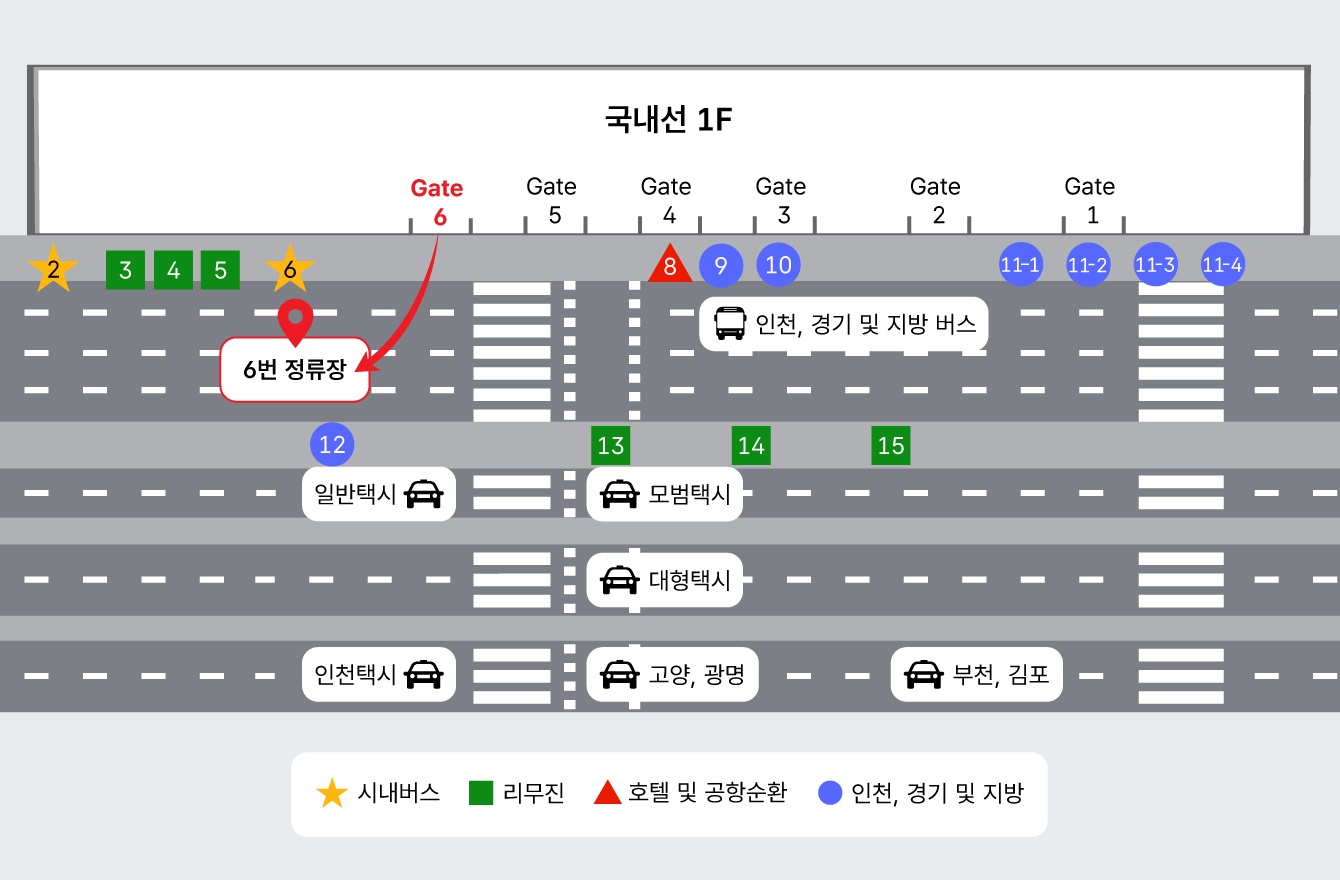 | 탑승 장소 | 1층 5번 | 1층 3번 | 교통센터 지하 1층 29번 | 교통센터 지하 1층 18번 |